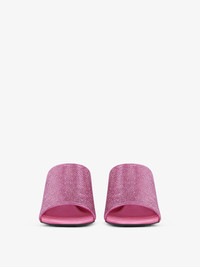 - Mules in satin with strass all-over. - G Cube line. - Thin G Cube iconic sculpted heel in silvery finish. - GIVENCHY PARIS signature and 4G emblem all-over under the outsole. - Leather insole with GIVENCHY signature. - Heel height: 2.8 in.
