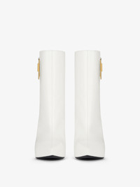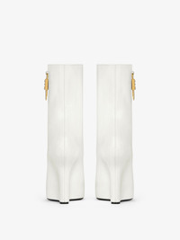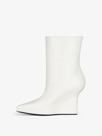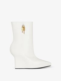 - Ankle boots in calfskin leather with pointy toe. - G-Lock line. - G-Lock padlock in golden metal finish on the side. - Sphere shape on the back. - Covered platform. - Wedge platform. - Leather insole with GIVENCHY 4G signature. - Heel height : 3.1 in - Plateform height : 0.9 in