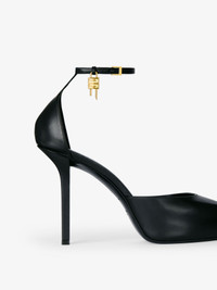 - Pumps in calfskin leather with pointy toe. - G-Lock line. - Thin ankle strap with G-Lock padlock in golden metal finish. - Covered platform. - Thin heels. - Leather insole with GIVENCHY 4G signature. - Heel height: 4.3 in.