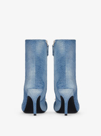 - Ankle boots in washed denim. - G Woven line. - Silvery-finish 4G Chain woven on the top. - Thin heels. - GIVENCHY signature on the insole. - Heel height: 3.5 in