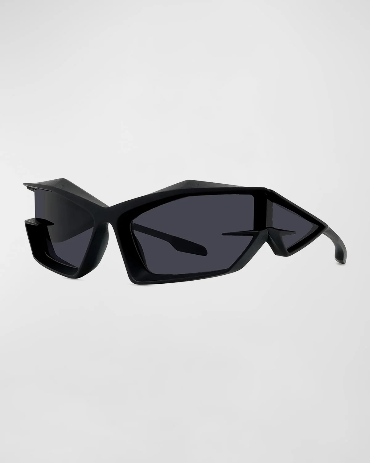 Givenchy geometric sporty cateye sunglasses in nylon Featuring signature "G" shape all around Lens/bridge/temple (in mm): 69 17 140 Solid lenses Logo on hinges Saddle nose bridge Wide, tapered arms Logo on earpieces 100% UVA/UVB protection Made in Poland