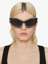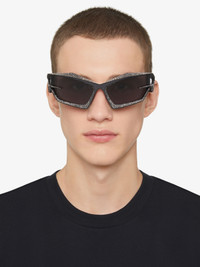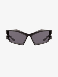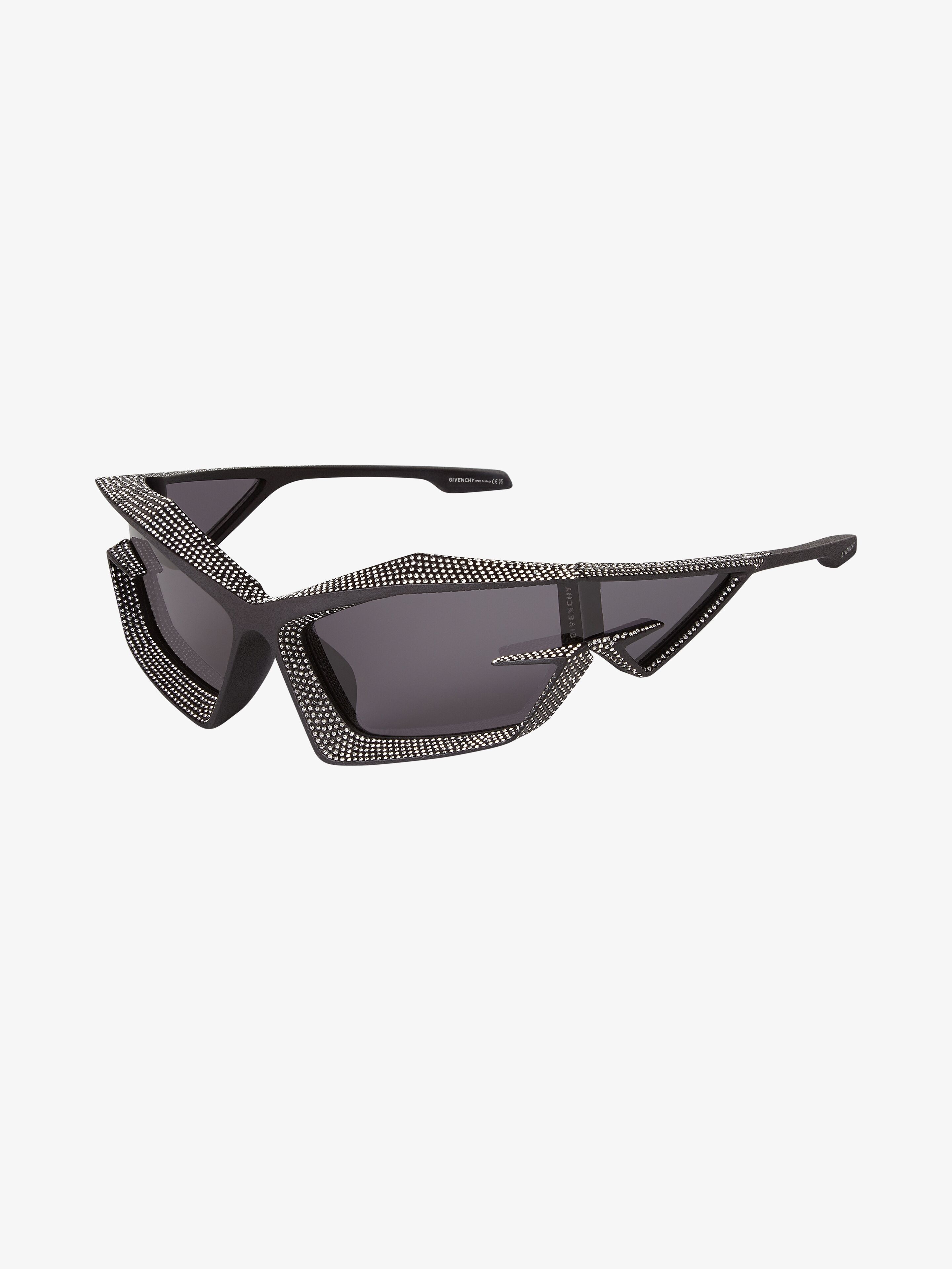 - Unisex sunglasses in metal paved with Swarovski crystals. - Giv Cut line. - Graphic 4G shaped frame on the front and temples. - Smoked lenses. - GIVENCHY signature on one lens and end-tips of the temples. - 100% UVA/UVB protection. - Weight : 39g. - Model comes in a hard case.