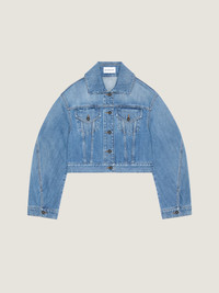 - Jacket in washed denim. - Classic collar. - GIVENCHY embossed leather patch in leather on the lower back. - Button closure. - Buttoned cuffs. - GIVENCHY engraved buttons. - Two chest flap pockets. - Bias seams for a cocooning volume.