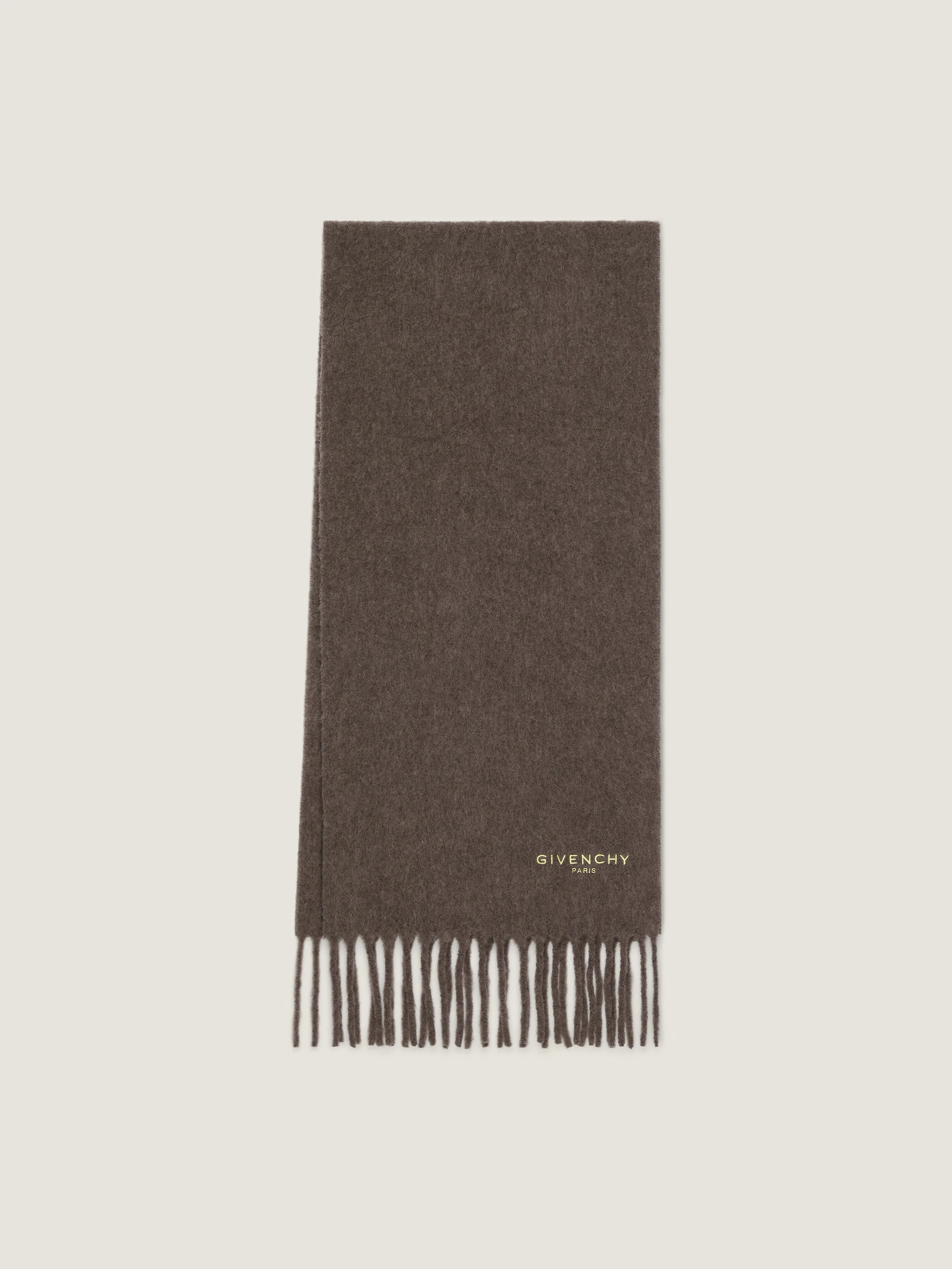 - Large scarf in alpaca wool. - Contrasting GIVENCHY Paris signature embroidered on the edge. - Fringed edges.