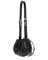 - About the brand: Elegance. Sophistication. Finesse. - Made in Italy - Pumpkin Small Leather Crossbody in black leather and gold-tone & silver-tone hardware. Tumbled lambskin, decorative buckles on shoulder strap, GIVENCHY logo stamps, shoulder or crossbody carry - Interior design details: one main compartment, suede lining, logo patch - Measures 8.7in wide x 7.5in high x 5.9in deep - Adjustable shoulder strap drops 18.5in - Drawstring closure - Please note: All measurements were taken by hand and are approximate; slight variations may occur. - Our products are 100% genuine. In some cases we purchase merchandise from trusted independent suppliers and not directly from the brand owner. In all cases we stand by the authenticity of every product sold on our site.