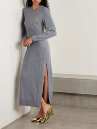 Givenchy's dress is defined by the diamond-shaped ribbed panel at the waist, which draws the eye inward. It's been made in Italy from sumptuous cashmere and has a thigh-grazing split. Wear yours with leather boots or metallic pumps. Size & Fit - Fits true to size, take your normal size - Designed for a slim fit - Lightweight knit - Model is 175cm/ 5'9" and is wearing a size Small Details & Care - Gray melange cashmere - Button-fastening keyhole at back - 100% cashmere; trim: 95% cashmere, 4% polyamide, 1% elastane - Unlined - Dry clean