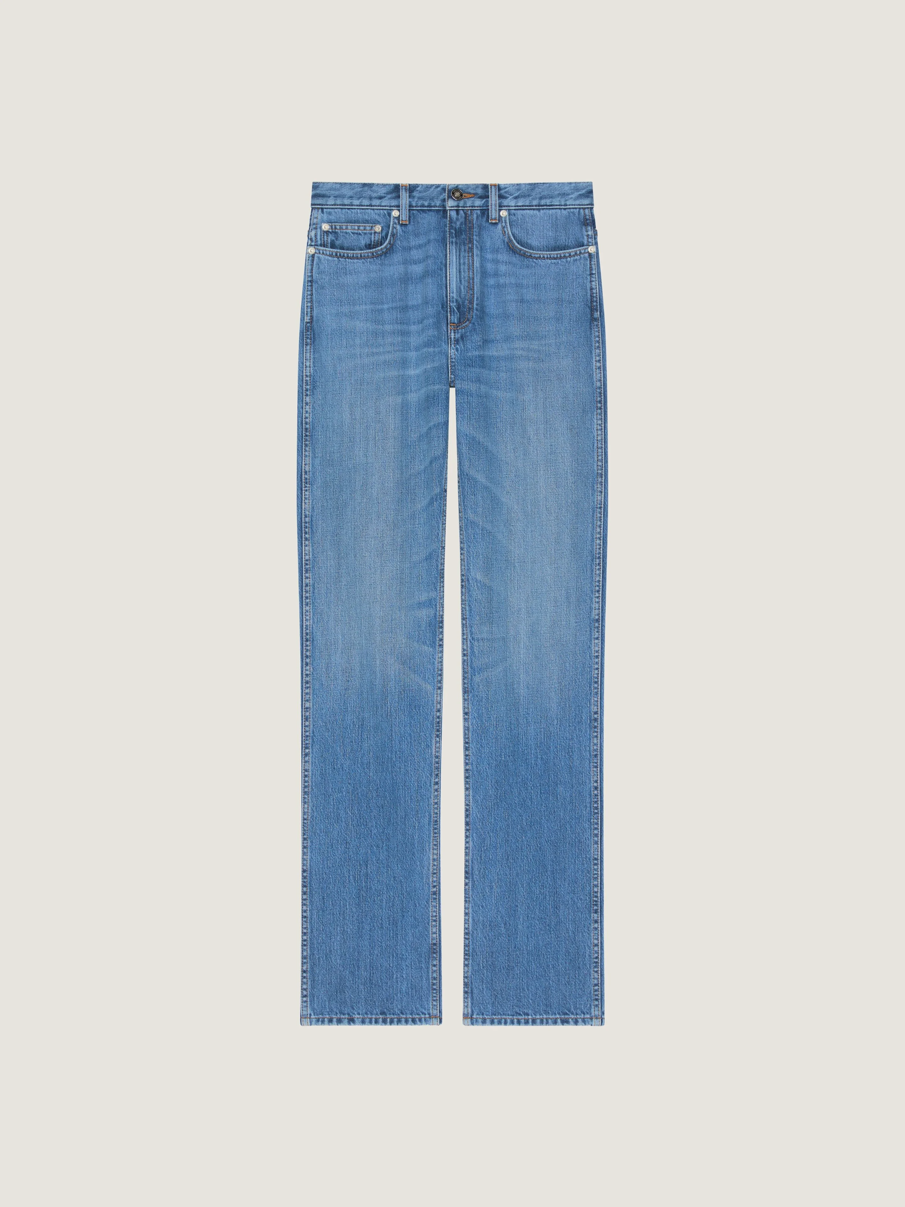 - Jeans in washed denim. - Waist with loops, zipped and button closure. - GIVENCHY engraved button. - GIVENCHY leather patch on the back. - Three front pockets. - Two back pockets. - Straight fit.