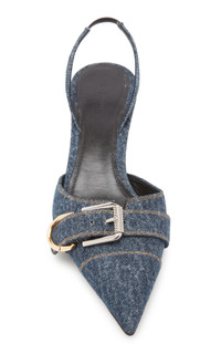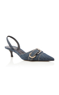 One of the first luxury ready-to-wear houses, Givenchy has been sensuously reinterpreting the codes of elegance, sophistication and femininity since it was founded in 1952. Today, Creative Director Matthew M. Williams upholds the legacy of Hubert de Givenchy with timeless designs that enhance feminine beauty. Inspired by the house's 'Voyou' bags, these low-heeled slingbacks are made from washed denim with the same two-tone hardware. PRODUCT DETAILS - Heel height measures 45mm/ 1.75" - Slip on - Composition: denim - Made in Italy