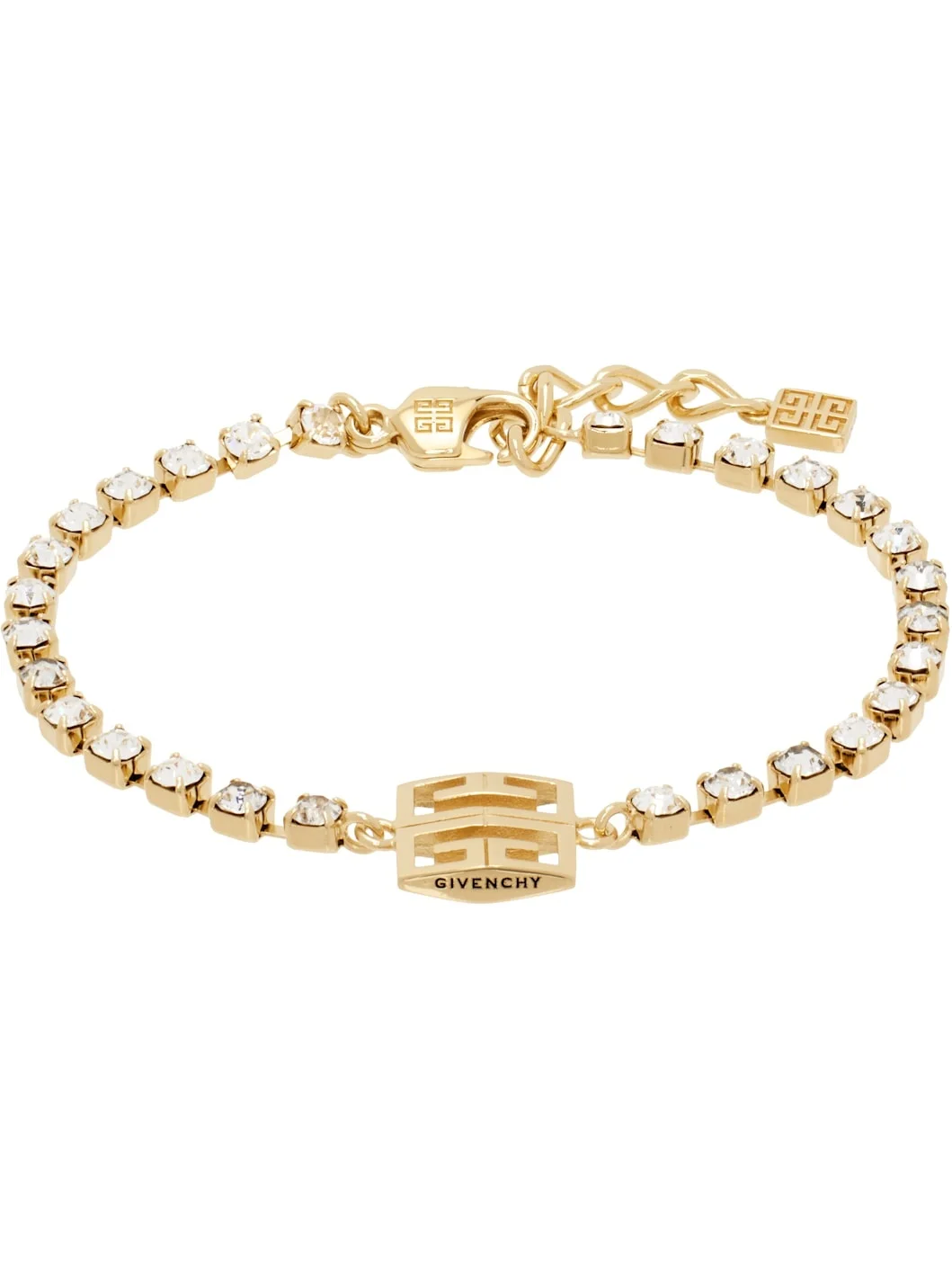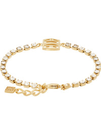 Cup chain bracelet in gold-tone brass. · Logo hardware at face · Swarovski crystals at length · Logo charm at adjustable lobster-clasp fastening · L7.5" Supplier color: Golden yellow