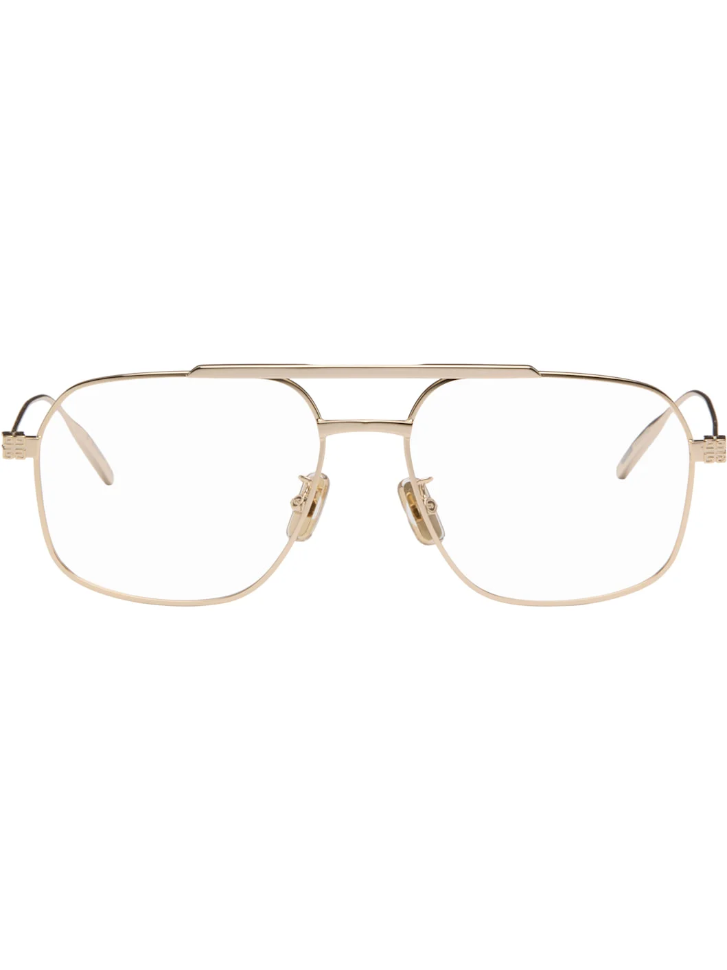 Aviator-style metal-frame optical glasses. · Logo-engraved top bar · Adjustable metal nose pads · Logo hardware at hinges · Logo engraved at temple tips · Includes case · Size: 55.16 145 Supplier color: Gold Metal. Made in China 252278F004014