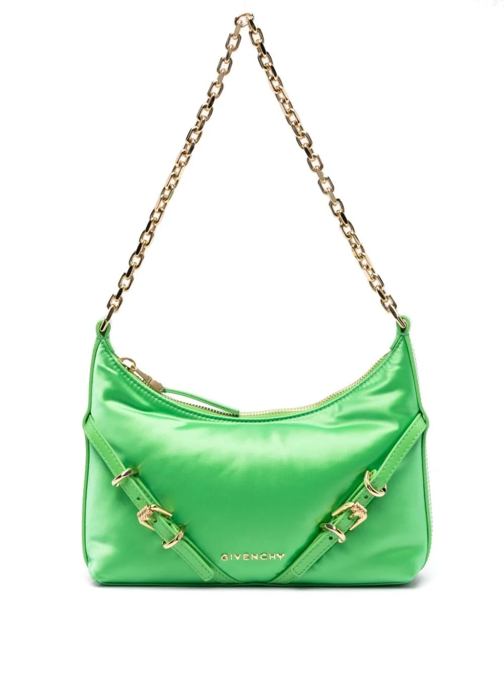 logo-lettering zipped shoulder bag Highlights - Neon green - Gold-tone logo lettering - Internal logo patch - Gold-tone hardware - Decorative buckle detail - Top zip fastening - Chain-link shoulder strap - Main compartment Made in Italy Composition Outer: Polyamide 100% SIZE & FIT Model measurements Height 5 ft 10 in(1.78 m) Bust/Chest 31.49 in(80 cm) Hips 36.22 in(92 cm) Waist 25.59 in(65 cm) Measurement DEPTH 1.96 in(5 cm) HEIGHT 6.69 in(17 cm) STRAP 8.66 in(22 cm) WIDTH 9.44 in(24 cm)