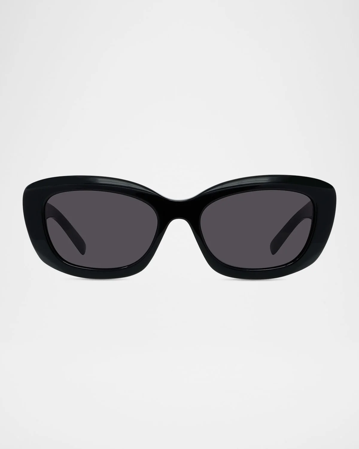 Givenchy oval sunglasses from the GV Day line feature a bold and distinctive frame shape Eye/bridge/temple (in mm): 018135 Monochromatic lenses Saddle nose bridge Logo signature engraved on both temples Wide, tapered arms 100% UVA/UVB protection Acetate Hand wash Imported
