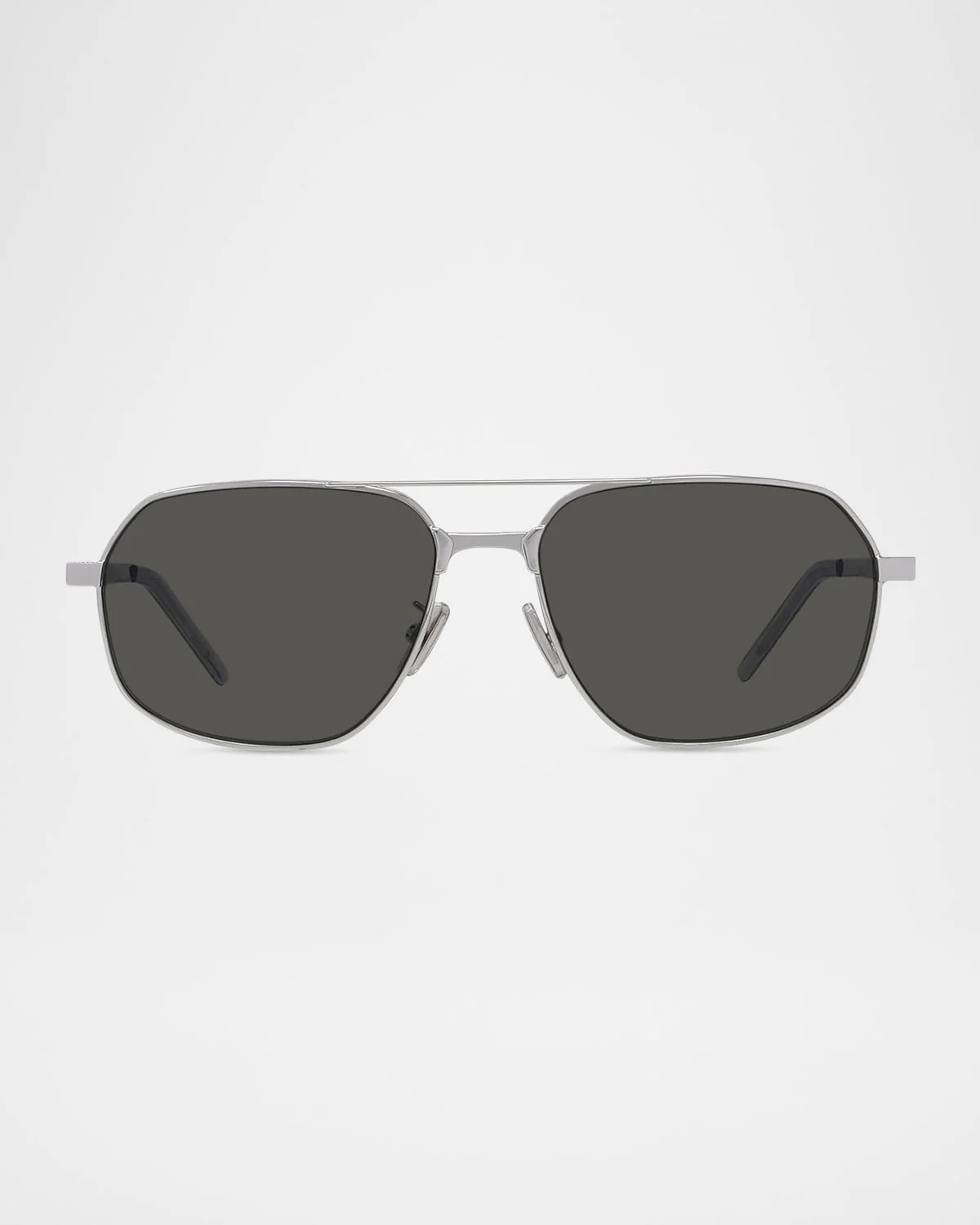 Sleek metal gives modern character to the aviator sunglasses by Givenchy From the GV One line Eye/bridge/temple (in mm): 5716145 Monochromatic lenses Adjustable nose pads Logo signature engraved on both temples Thin, tapered arms 100% UVA/UVB protection Metal Hand wash Made in Italy