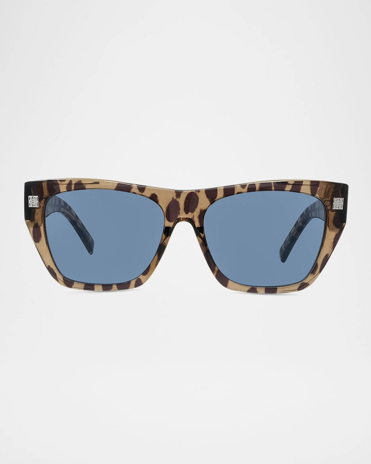 - Givenchy "GV40061UW" square sunglasses are made from bio-based acetate - Eye/bridge/temple (in mm): 55-16-140 - Solid lenses - Saddle nose bridge - Thick, tapered arms - 4G emblem detailed temples - Acetate - 100% UVA/UVB protection - Imported - Proposition 65 warning for California residents