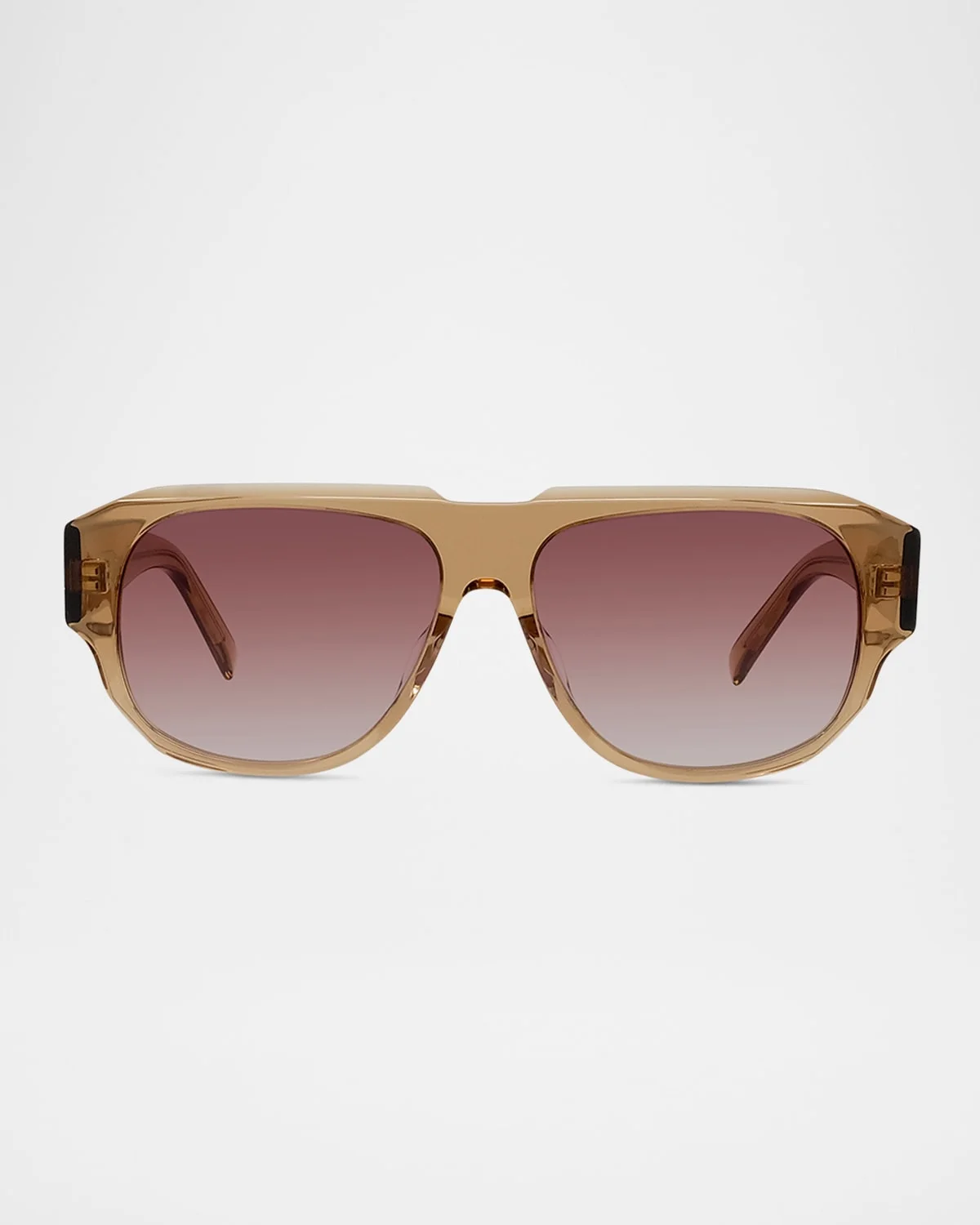 - Givenchy square sunglasses are made from biodegradable acetate - Eye/bridge/temple (in mm): 55-14-140 - Gradient lenses - Saddle nose bridge - Thick, tapered arms - Classic logo on the temples - Acetate - 100% UVA/UVB protection - Imported - Proposition 65 warning for California residents