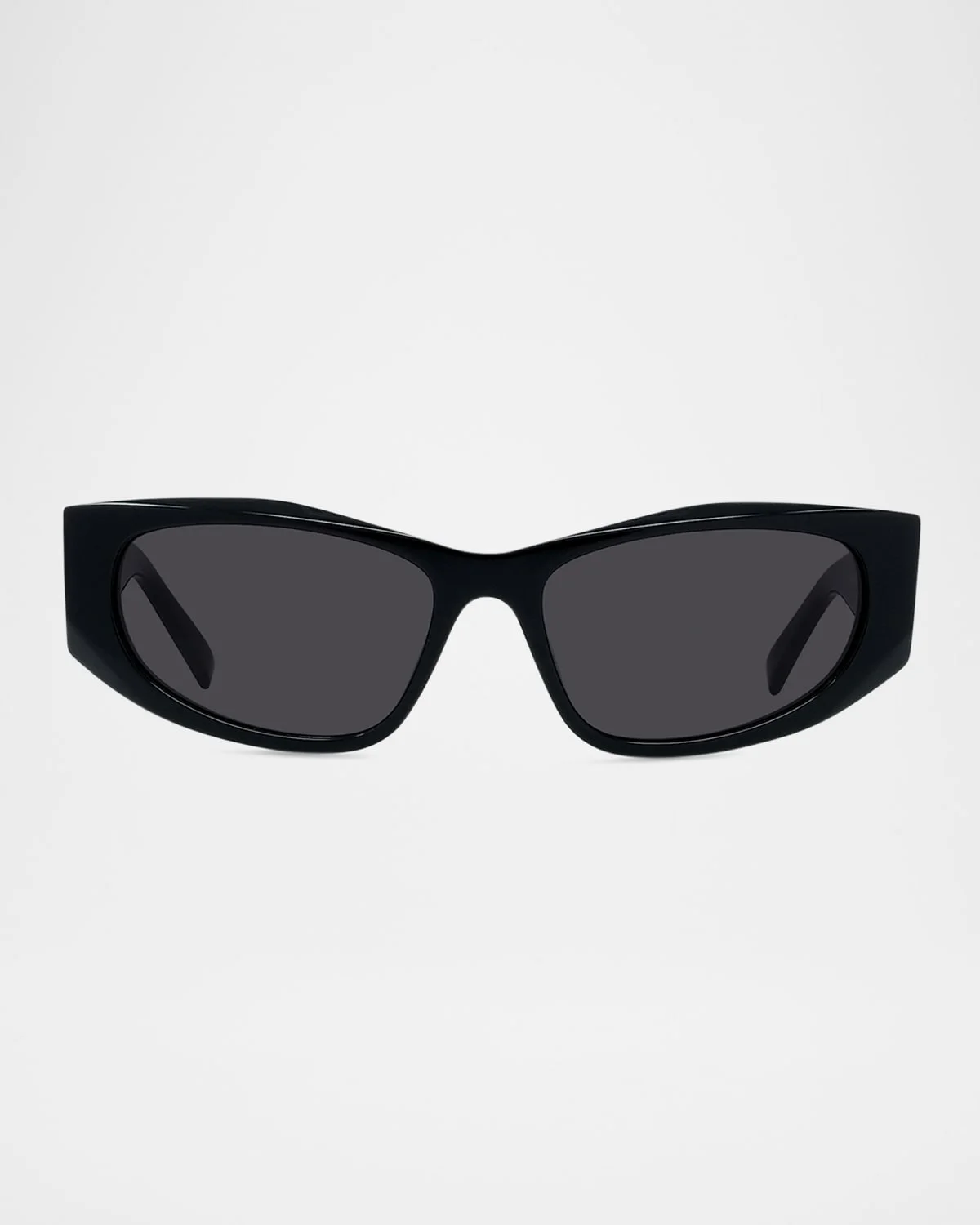 - Givenchy "GV40116IW" wrap-around sunglasses made with bio-acetate materials - Eye/bridge/temple (in mm): 56-17-135 - Solid lenses - Saddle nose bridge - Wide, tapered arms - Classic logo on the temples - Acetate - 100% UVA/UVB protection - Imported - Proposition 65 warning for California residents