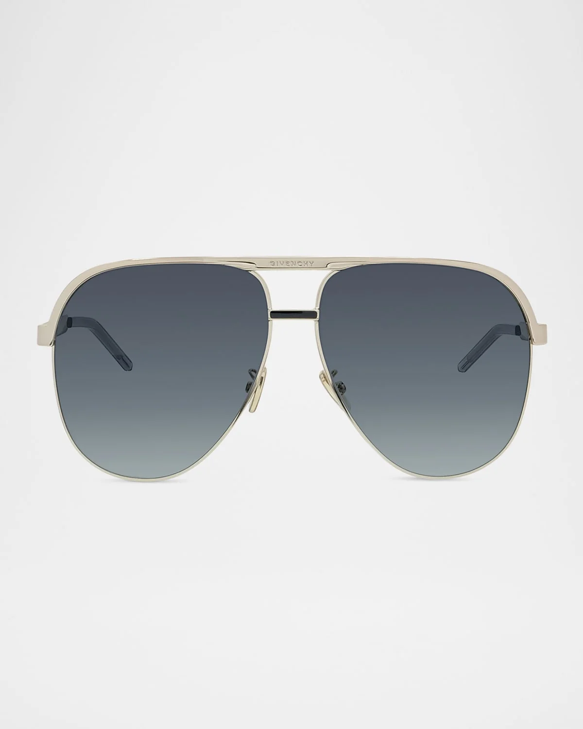 - Givenchy aviator sunglasses in metal - Eye/bridge/temple (in mm): 62-13-140 - Solid lenses - Adjustable nose pads - Logo engraved brow bar - Thin, tapered arms - Metal - 100% UVA/UVB protection - Made in Italy - Proposition 65 warning for California residents