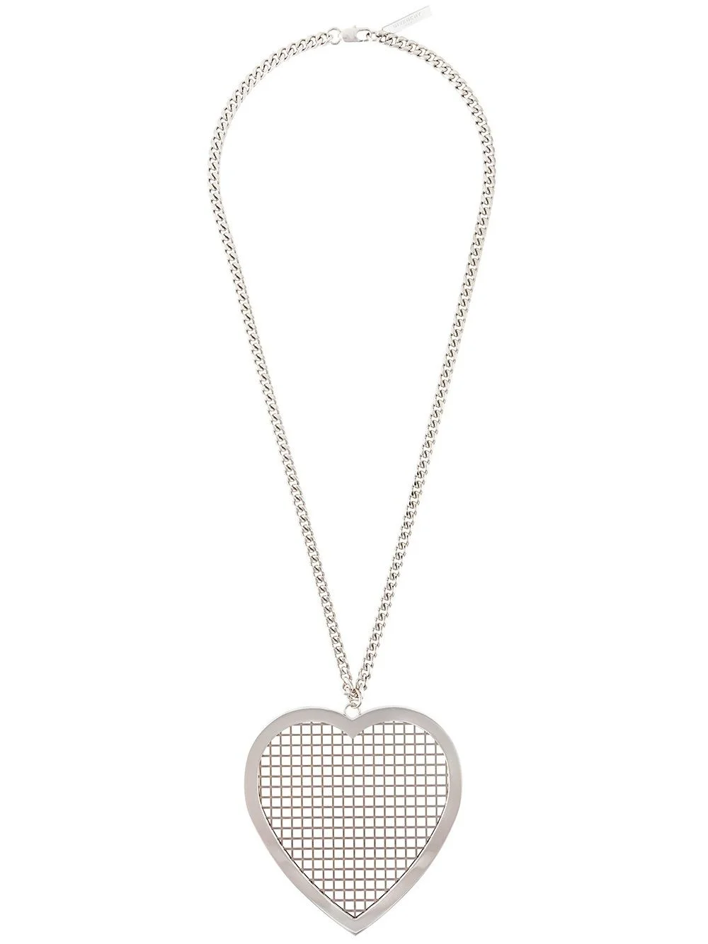 heart pendant necklace Silver toned brass heart pendant necklace from Givenchy featuring a curb chain, a lobster claw fastening, a heart pendant and a silver-tone logo plaque. Made in Italy SIZE & FIT Measurement TOTAL LENGTH 18.5 in(47 cm) PENDANT WIDTH 4.33 in(11 cm) PENDANT LENGTH 4.33 in(11 cm)