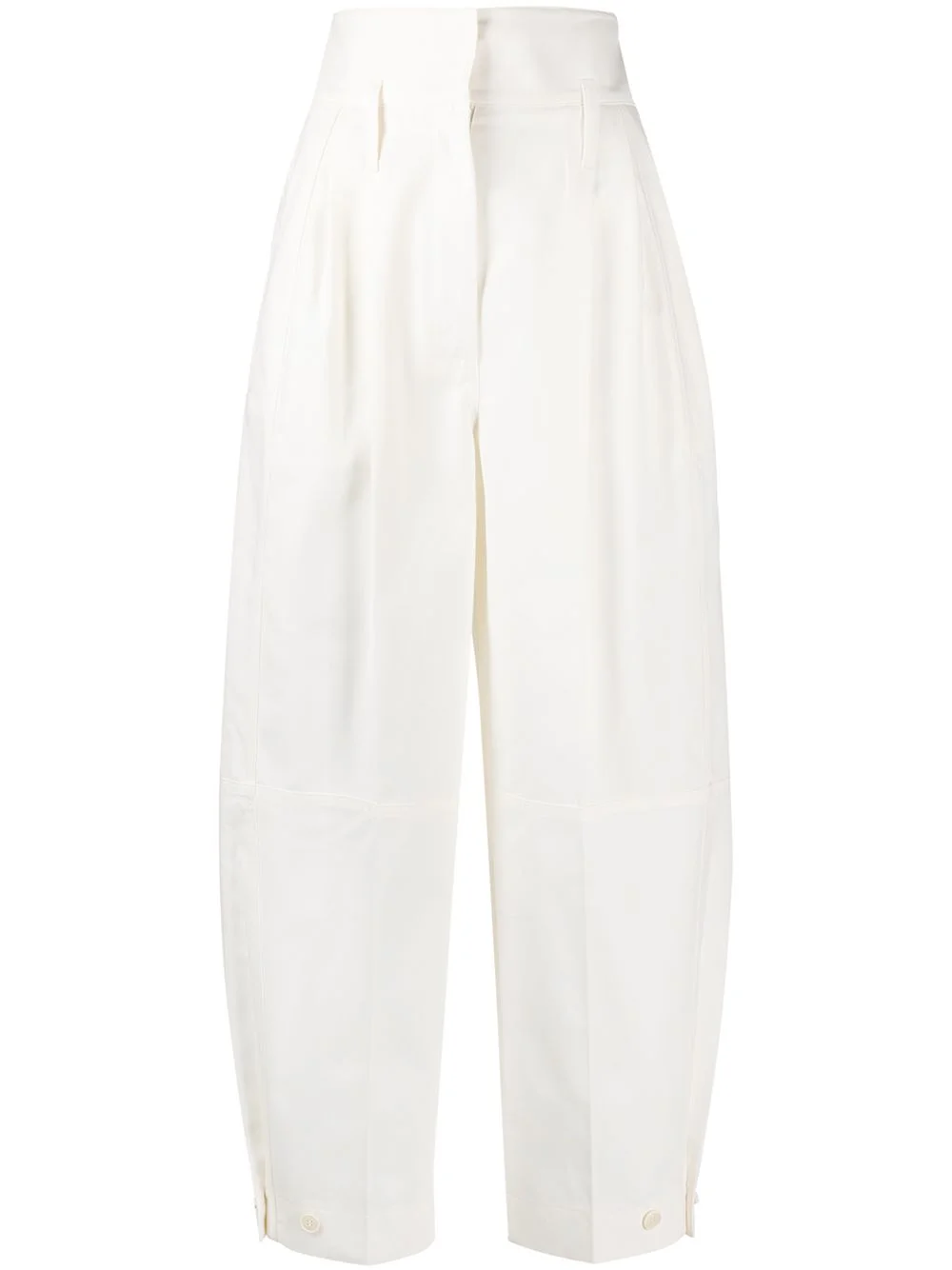 high-waisted balloon trousers Call us Phileas Fogg 'cause we'll be flying high in these white cotton high-waisted balloon trousers from Givenchy. Featuring a cinched waist, a waistband with belt loops, side slit pockets, stitched panels, button cuffs and inverted lapels, we guarantee they'll be in our style rotation for more than 80 days, too! Made in Italy Composition Outer: Cotton 100% Lining: Cotton 100% SIZE & FIT Model measurements Height 5 ft 10 in(1.78 m) Bust/Chest 33.07 in(84 cm) Hips 35.82 in(91 cm) Waist 26.96 in(68.5 cm) FittingInformation This piece fits true to size. We recommend you get your regular size Designed to be fitted at the waist, loose over the leg Made with a mid-weight non-stretch fabric Washing instructions Dry Clean Only