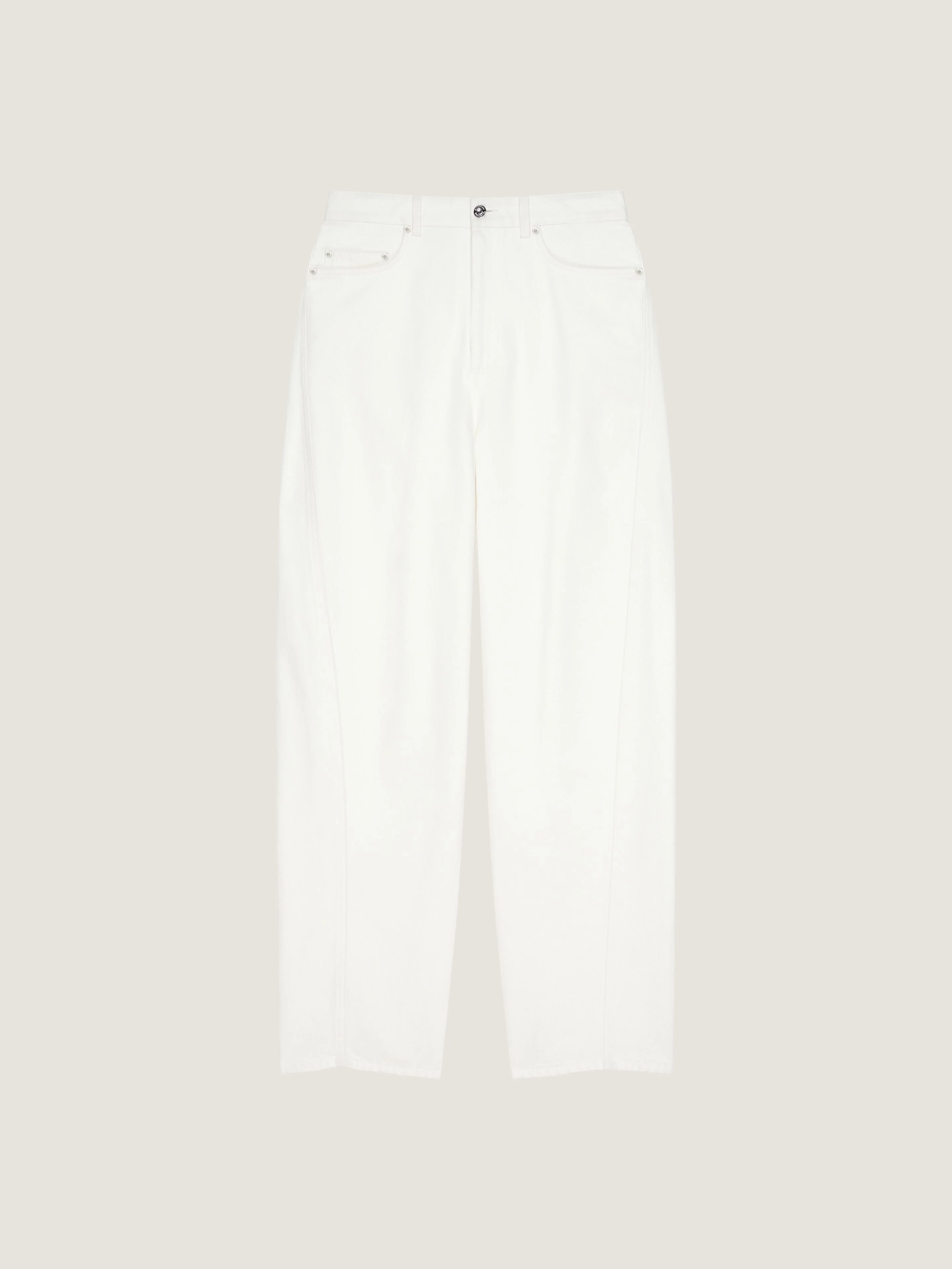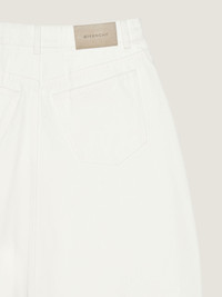 - Jeans in denim. - Waist with loops, zipped and button closure. - GIVENCHY engraved button. - GIVENCHY leather patch on the back. - Three front pockets. - Two back pockets. - Bias seams for a cocooning volume. - Model measures 5.8 Feet and wears a size 26.