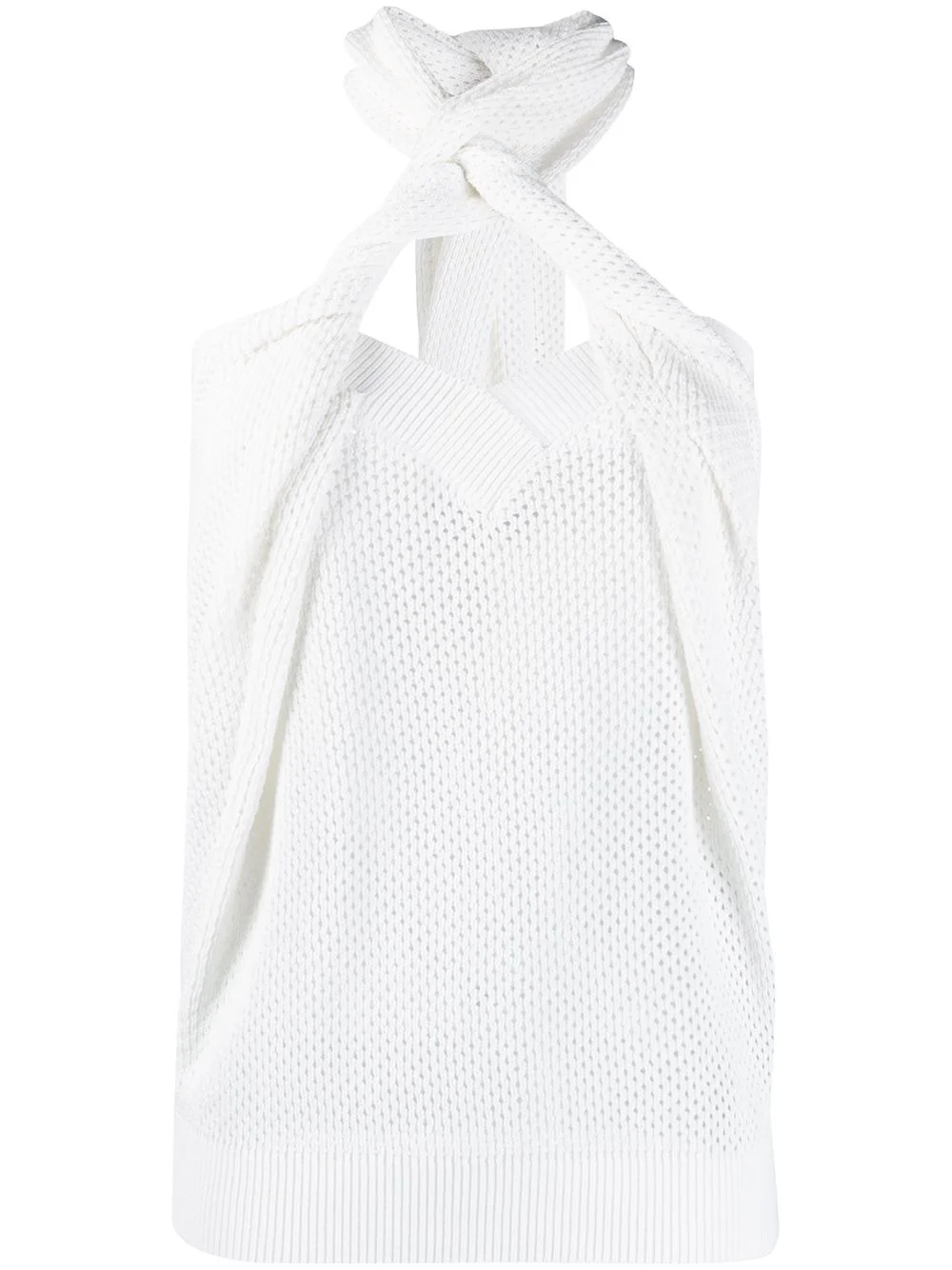 knitted top Take a walk on the beachside with this white knitted top from Givenchy. Designed with an easy rear fastening, this piece will instantly add a feminine touch to any look. Wait no more to get yours, girl! Featuring a halterneck, a v-neck, a sleeveless design, a ribbed hem and a loose fit. Made in Italy Composition Cotton 76%, Polyamide 24% SIZE & FIT Model measurements Height 5 ft 10 in(1.79 m) Bust/Chest 33.07 in(84 cm) Hips 35.82 in(91 cm) Waist 24.01 in(61 cm) FittingInformation This piece fits true to size. We recommend you get your regular size Cut for a loose fit Made with a mid-weight fabric Washing instructions Dry Clean Only