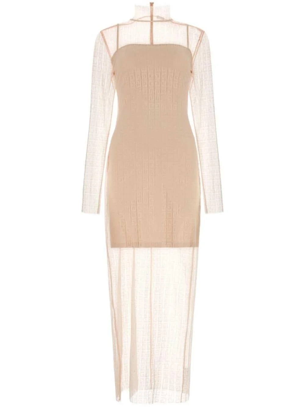 lace 4G dress Highlights - Blush pink - Stretch-design - Signature 4g motif - Sheer overlay - Mock neck - Long sleeves - Rear zip fastening - Long sleeves - Mid-length - Straight hem Made in Italy Composition Nylon 92%, Spandex/Elastane 8%