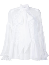lace-embroidered flared blouse Infused with the label’s signature dark romanticism and urban styling, French fashion house Givenchy was originally founded in 1952 by acclaimed couturier Hubert de Givenchy. Under the creative direction of Clare Waight Keller, the cult label continues to celebrate the label’s house codes through sharp tailoring and expert craftsmanship. This white cotton-silk blend lace-embroidered flared blouse is a staple piece and features a pussy bow fastening, long sleeves, a sheer construction, fitted cuffs, a flared style and a lace detail. Made in Italy Composition Outer: Silk 100%, Cotton 70%, Polyamide 20%, Viscose 10% SIZE & FIT Model measurements Height 5 ft 11 in(1.8 m) Bust/Chest 31.49 in(80 cm) Hips 35.82 in(91 cm) Waist 24.8 in(63 cm) Washing instructions Dry Clean Only