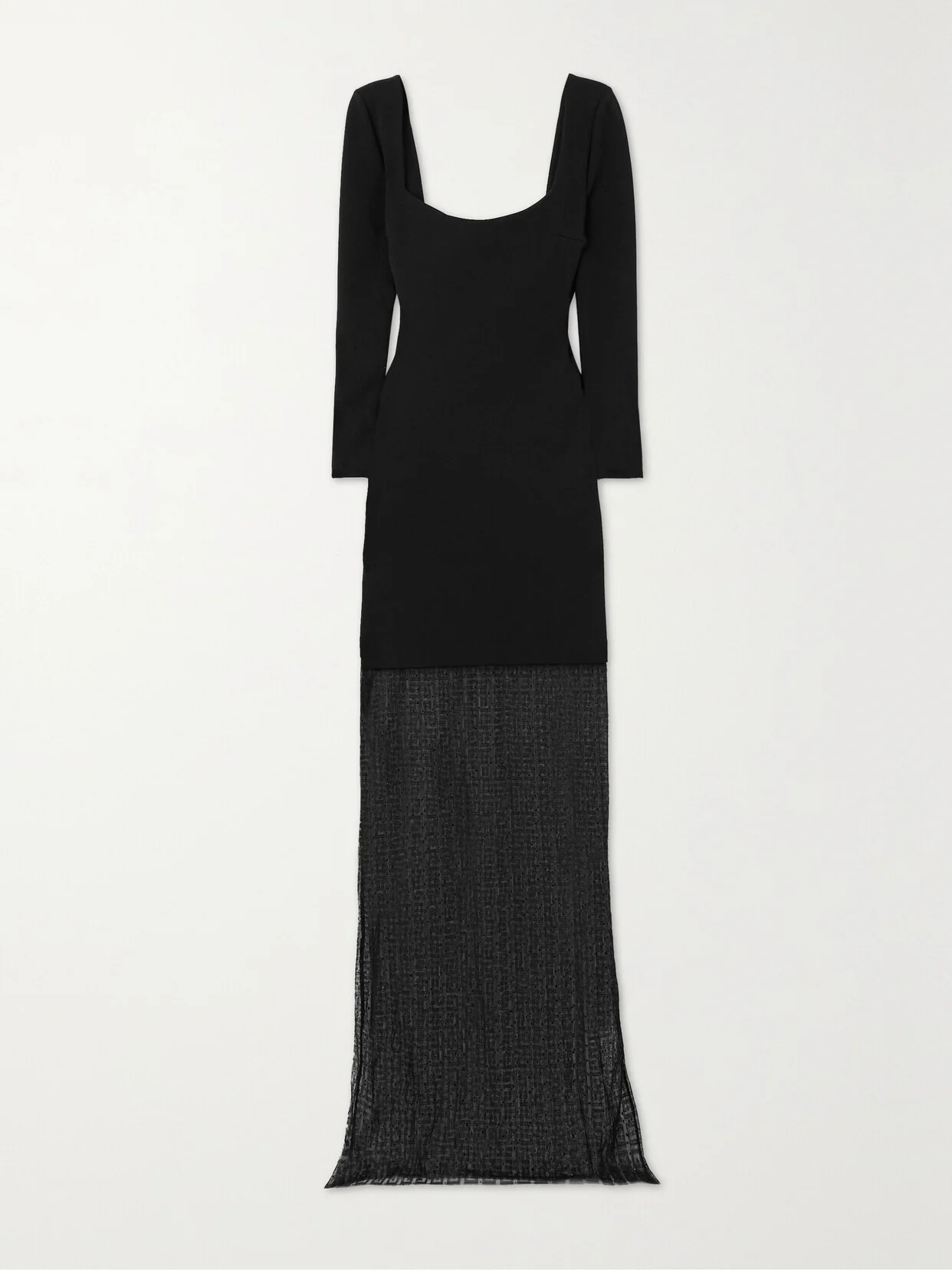 Givenchy's maxi dress is made from jersey and has a floor-skimming lace skirt - look closely and you'll see it's actually made up of the house's iconic 'G' motif. The square neckline is mirrored at the back and perfect for showcasing a stack of dainty necklaces.
