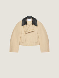 CROPPED PEACOAT WITH LEATHER COLLAR IN COTTON AND WOOL