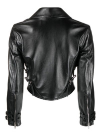 leather cropped jacket Highlights - Black - Lambskin - Smooth grain - Peak lapels - Off-centre front zip fastening - Long sleeves - Belted cuffs - Rear adjustable straps - Front zip fastening pockets - Two side stud-fastening pockets - Straight hem - Cropped - Full lining Imported Composition Lining: Viscose 55%, Polyester 45% Outer: Lambskin 100% Washing instructions Specialist Cleaning
