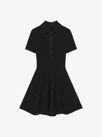 - Short dress with short sleeves in monogram 72 jacquard. - Polo button-down collar. - Flared skirt.