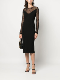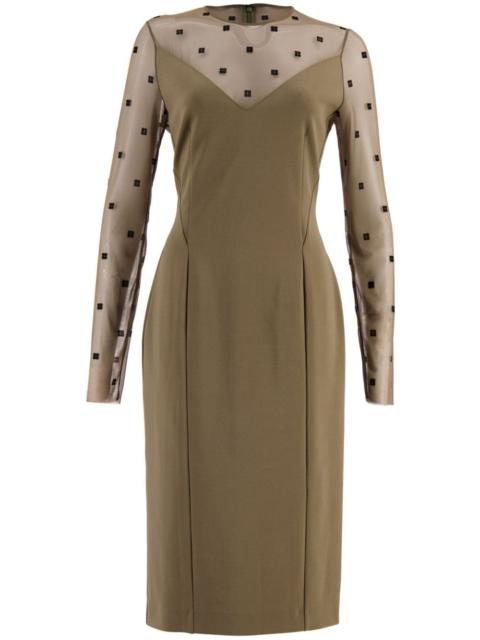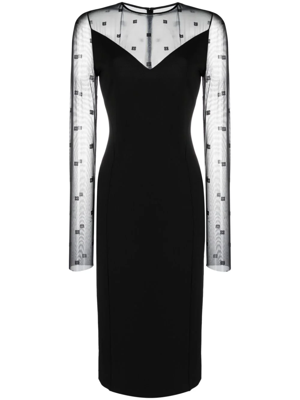 logo-jacquard midi dress Givenchy's geometric 4G motif is instantly recognisable and features in jacquard construction of this midi dress, noticable in the semi-sheer neckline achieving a subtle branded touch. Highlights - Black - Jacquard logo motif - Semi-sheer construction - Round neck - Long sleeves - Straight hem - Mid-length Made in Italy Composition Viscose 83%, Polyamide 12%, Elastane 5% SIZE & FIT Model measurements Height 5 ft 9 in(1.76 m) Bust/Chest 33.07 in(84 cm) Hips 34.64 in(88 cm) Waist 25.59 in(65 cm) FittingInformation Designed for a close fit throughout Made from a midweight stretch fabric, this piece offers elasticity and flexibility when worn This piece fits true to size – take your usual size
