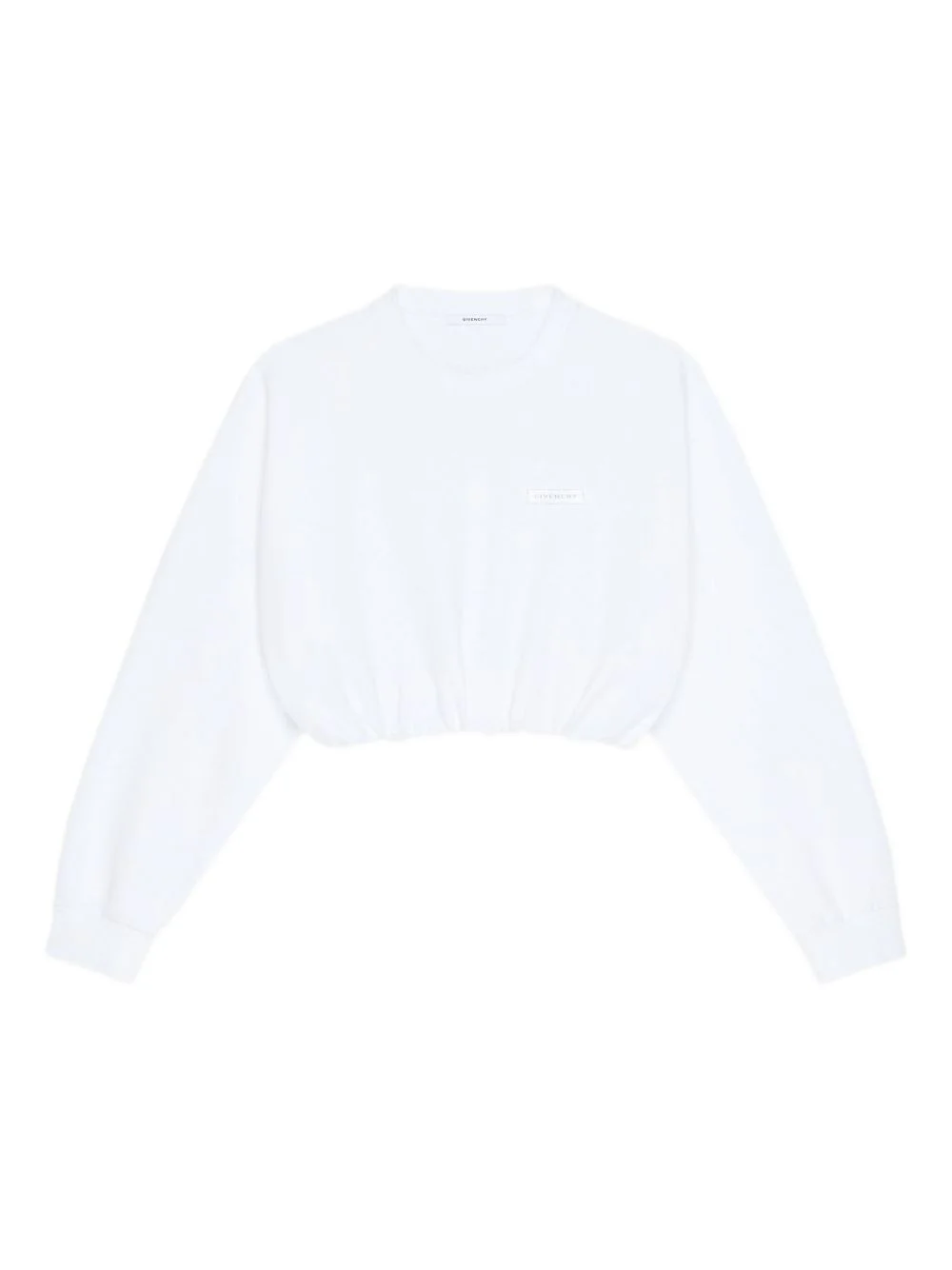 logo-patch cropped sweatshirt Highlights - White - Elasticated hem - Long sleeves - Crew neck - Logo patch Imported Composition Cotton 100% Washing instructions Read Manufacturer Guidelines