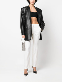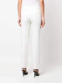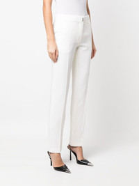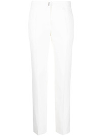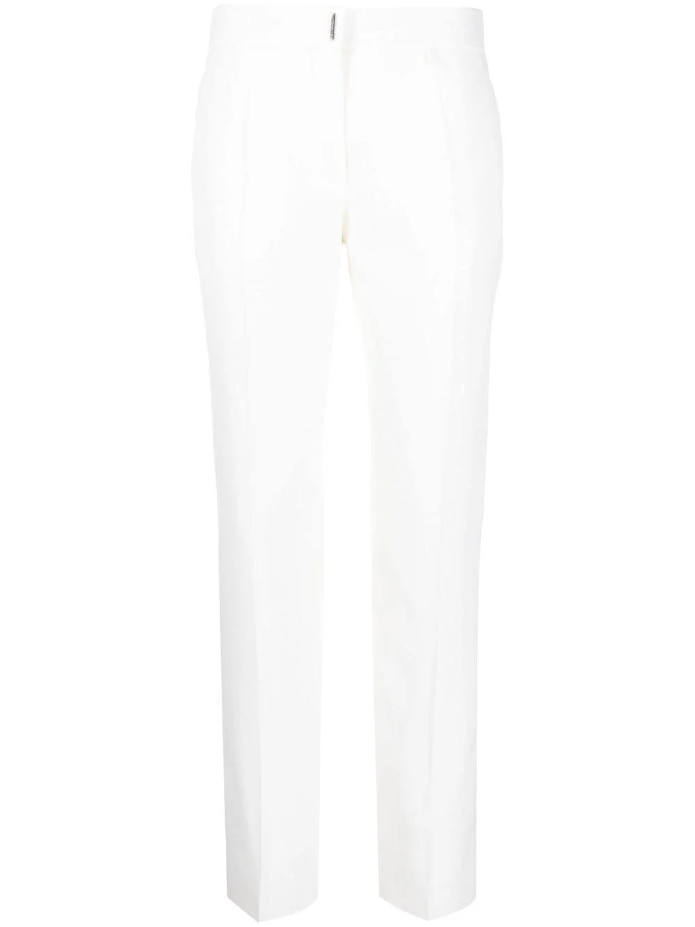 logo-plaque tailored trousers Showcasing its timeless French elegance, Givenchy presents these tailored trousers in a crisp white colourway. The straight pair is left minimal, simply accented with a logo-engraved metal plaque on the front. Highlights - White - Wool - Twill weave - Gunmetal-tone hardware - Pressed crease - Logo plaque - Hook and zip fly fastening - Slim cut - Two diagonal pockets to the sides - Two rear welt pockets Made in Italy Composition Outer: Wool 100% Lining: Cupro 100%, Cotton 100% SIZE & FIT Model measurements Height 5 ft 10 in(1.78 m) Bust/Chest 33.07 in(84 cm) Hips 35.82 in(91 cm) Waist 25.98 in(66 cm) FittingInformation This piece fits true to size. We recommend you get your regular size Cut for a slim fit Made with a mid-weight non-stretch fabric