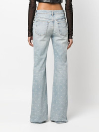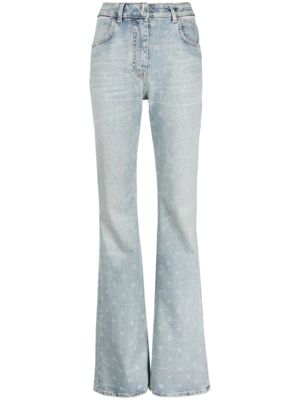 logo-print flared jeans Highlights - Light blue - Stretch-cotton - Denim - All-over logo print - Belt loops - Front button and zip fastening - Flared - Classic five pockets - Long length Made in Italy Composition Lining: Polyester 65%, Cotton 35% Outer: Cotton 90%, Elastane 10% SIZE & FIT Model measurements Height 5 ft 10 in(1.77 m) Bust/Chest 31.1 in(79 cm) Hips 34.64 in(88 cm) Waist 24.8 in(63 cm) FittingInformation Designed with a flared hem, these jeans allow for a close fit at the waist with a slim fit over the leg and widening towards the hem Constructed from stretch denim, this piece offers a stretch fit with durability This piece fits true to size – take your usual size