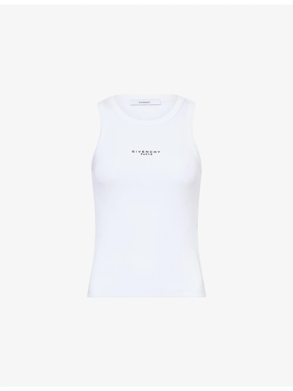 PRODUCT DETAILS - Givenchy cotton-jersey top - 98% cotton, 2% elastane - Slim fit, round neck, sleeveless, logo print at chest, ribbed texture - Machine wash cold - True to size - Model is 5ft 10in/1.78m and wears a size small - Lightweight, stretchy Ref: R04557410