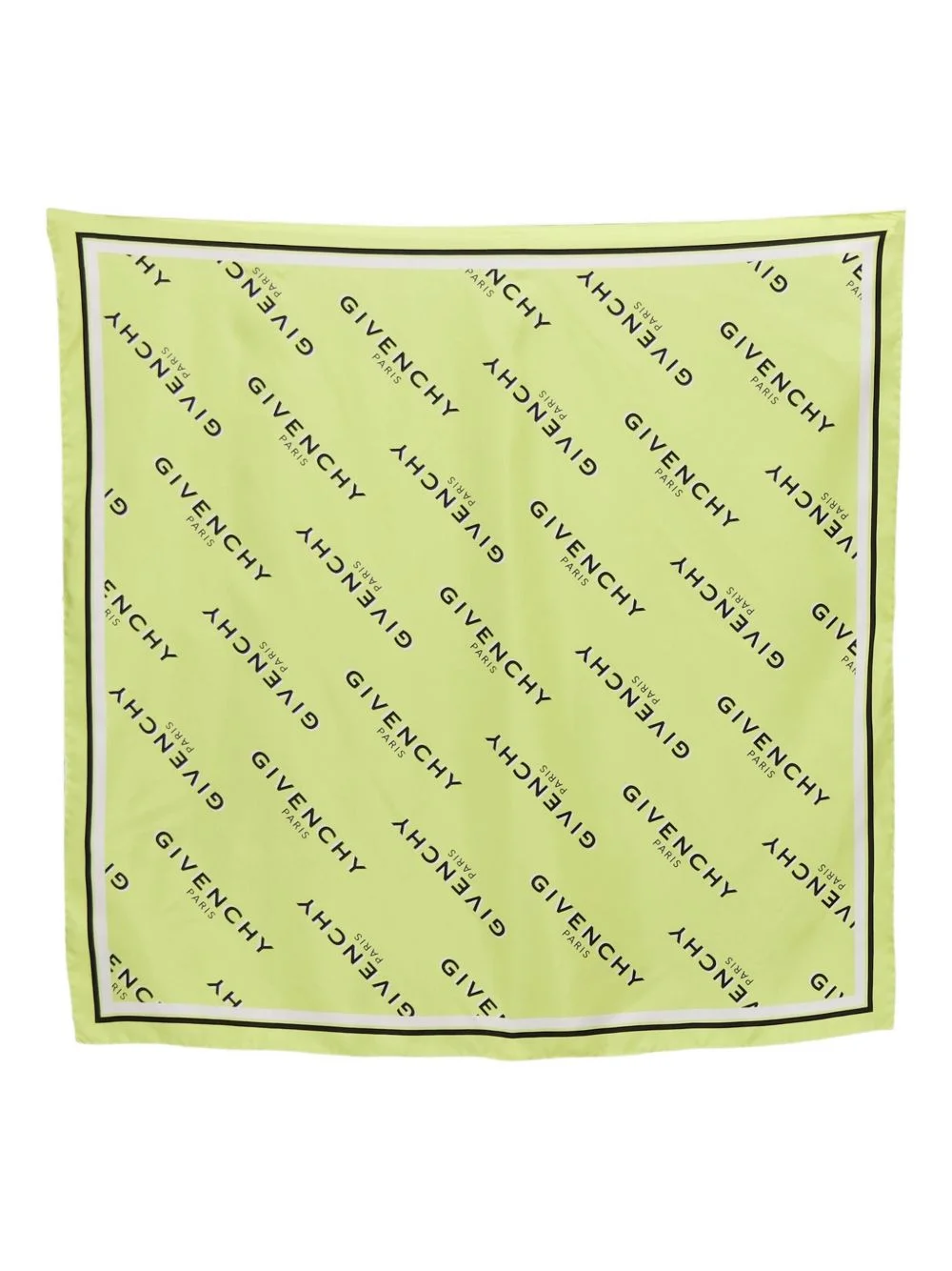 logo-print silk scarf Highlights - Acid yellow - Silk - Logo pattern - Black trim - Square shape Made in Italy Composition Silk 100% Washing instructions Read Manufacturer Guidelines