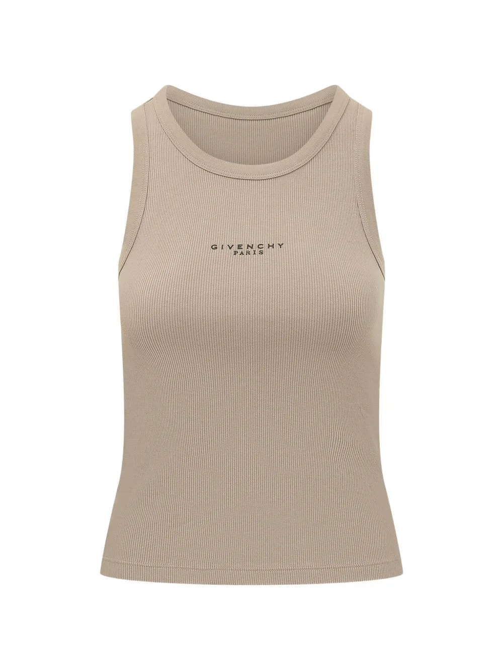 logo-print sleeveless top Highlights - Cappuccino beige - Ribbed knit - Round neck - Sleeveless Imported Composition Cotton 98%, Spandex/Elastane 2% Washing instructions Read Manufacturer Guidelines