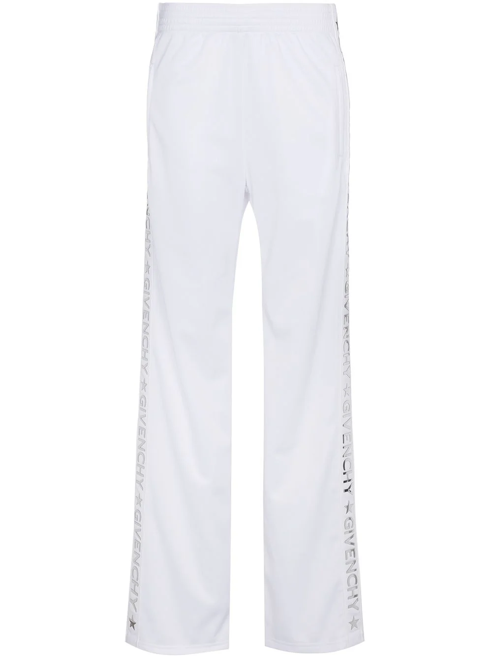 logo stripe track pants Scattered with the occasional punch of red leather or luxurious velvets to up the anti, Waight Keller’s SS18 offering was by no means boring, rather it reminded audiences of the beauty in simplicity. These white logo stripe track pants from Givenchy feature an elasticated waistband, a loose fit and branded logo stripe to the side. Imported Composition Outer: Polyester 100% Lining: Cotton 100% SIZE & FIT Model measurements Height 5 ft 9 in(1.75 m) Bust/Chest 32.67 in(83 cm) Hips 36.22 in(92 cm) Waist 24.8 in(63 cm)