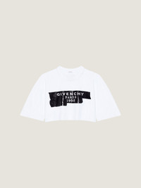 - Short-sleeved t-shirt in cotton. - Crew neck. - GIVENCHY Tape 3D print on the front. - Cropped fit. - Model measures 5.8 Feet and wears a size XS.