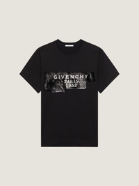- Short-sleeved t-shirt in cotton. - Crew neck. - GIVENCHY Tape 3D print on the front. - Fitted cut. - Model measures 5.8 Feet and wears a size XS.