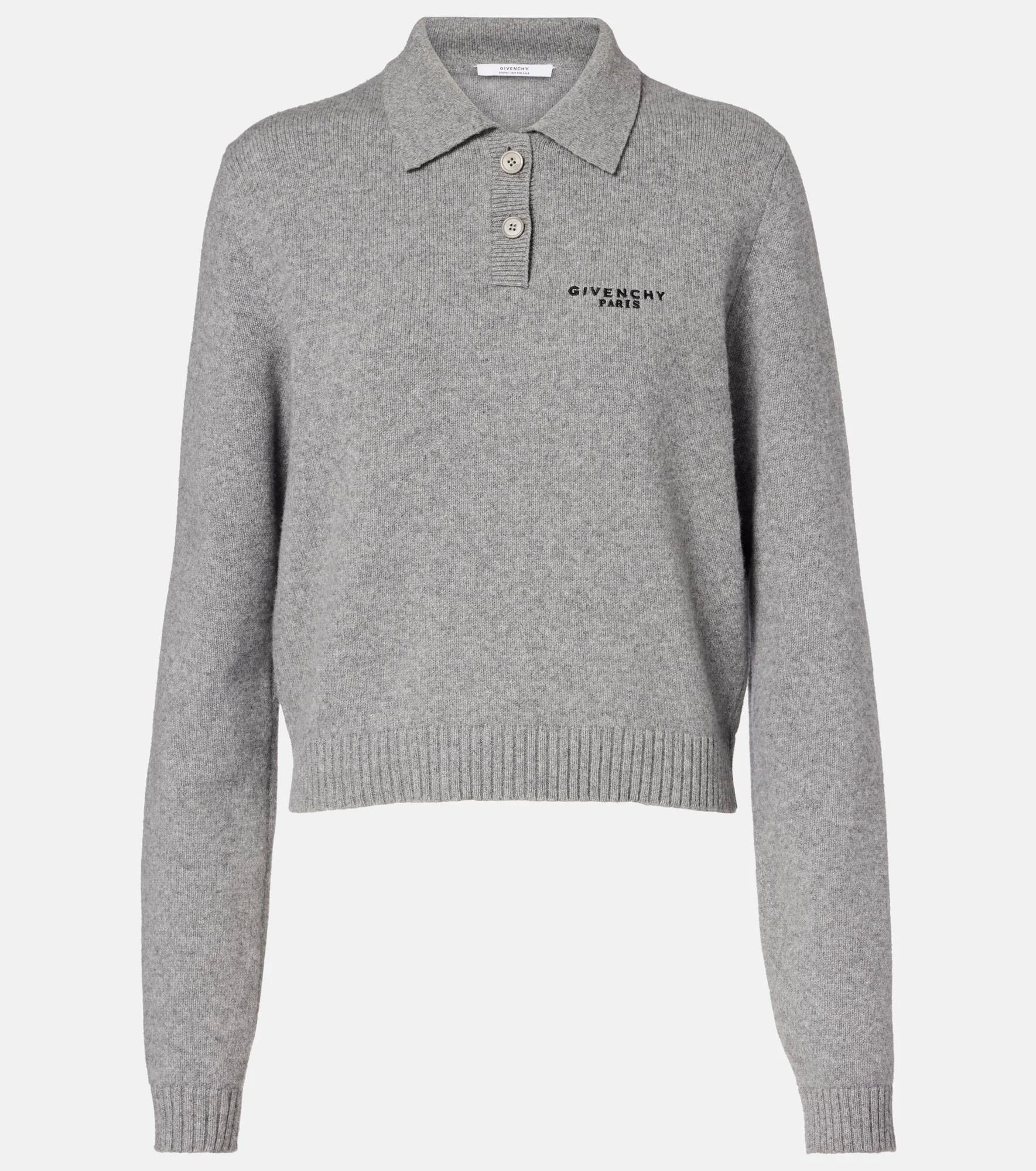 Givenchy revolutionized fashion with easy, elegant, architectural separates – destined to be worn day to night. Made from wool and cashmere, this polo sweater is a long-sleeved style with the brand's logo at the heart. Product Details - Material: 70% wool, 30% cashmere - Care instructions: dry clean - Made in Italy - Color: grey - Designer color name: Light Grey - Item color: gray - Collar: polo collar - Cuff: ribbed - Closure: partially buttoned front - Hem: ribbed - Item number: P01124964