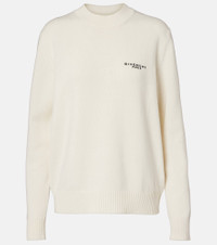 This sweater from Givenchy is made from a soft blend of wool and cashmere. The design is finished with signature logo embroidery at the chest and ribbed-knit detailing along the neckline, hem, and cuffs. Product Details - Material: 70% wool, 30% cashmere - Care instructions: dry clean - Made in Italy - Designer color name: Ivory - Item color: white - Collar: crewneck - Cuff: ribbed - Hem: ribbed - Item number: P01124978 Size & Fit - True to size - Straight fit - Falls to the hip - The model seen in the picture is 178cm-5'10" and wearing a size XS