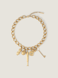- Chain necklace in golden-finish metal. - Lucky Charms line. - Unfixed charms inspired from Hubert de Givenchy's objects: golden-finish metal bird, fish, button, egg, key and peanut. - GIVENCHY signature engraved on the key. - Adjustment chain with GIVENCHY engraved metal plaque. - Matching bracelet and earrings sold separately.