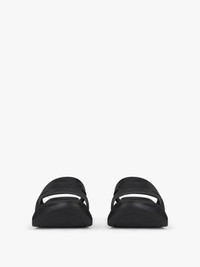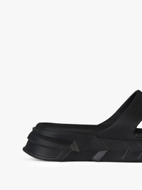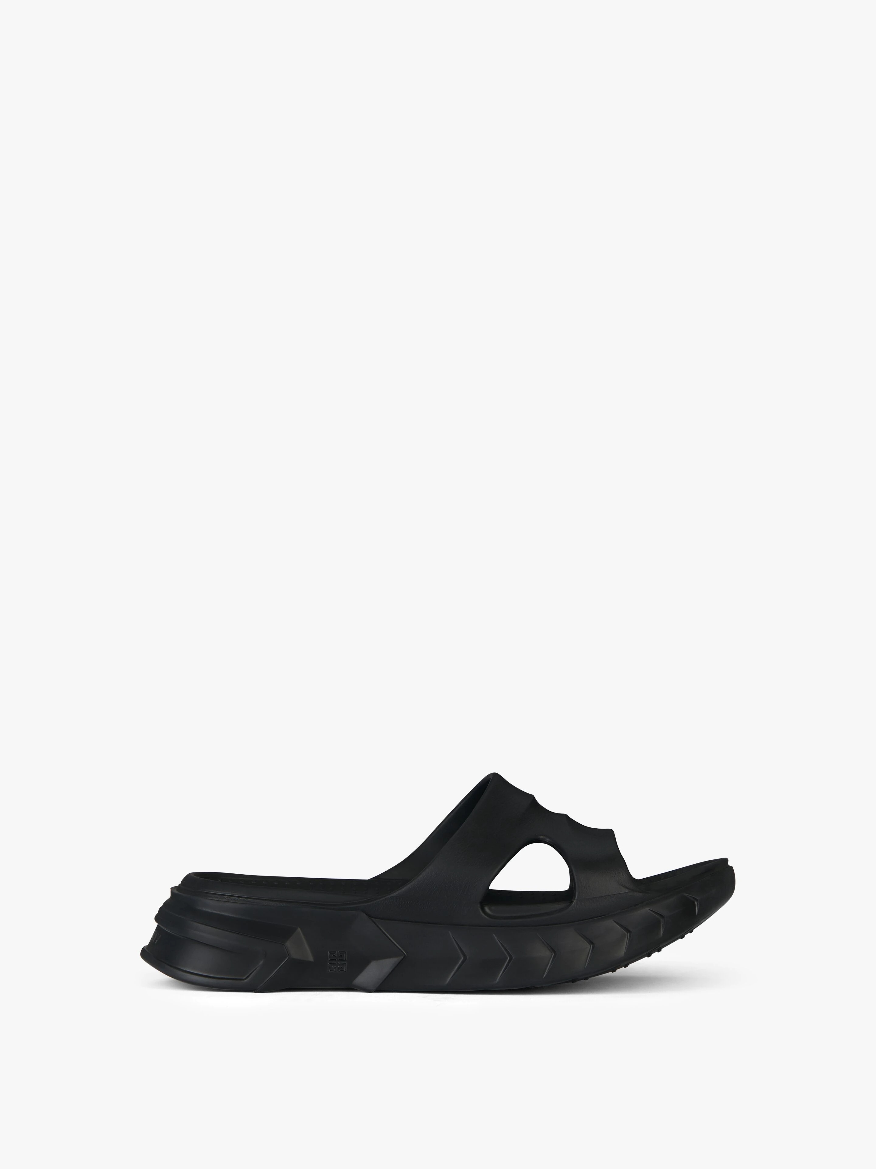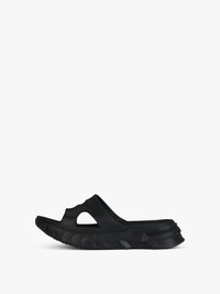 - Flat sandals in molded rubber. - Color: black. - Thick graphic sole. - GIVENCHY signature engraving on the heel. - Raised 4G emblem on the side. - Light and comfortable version.