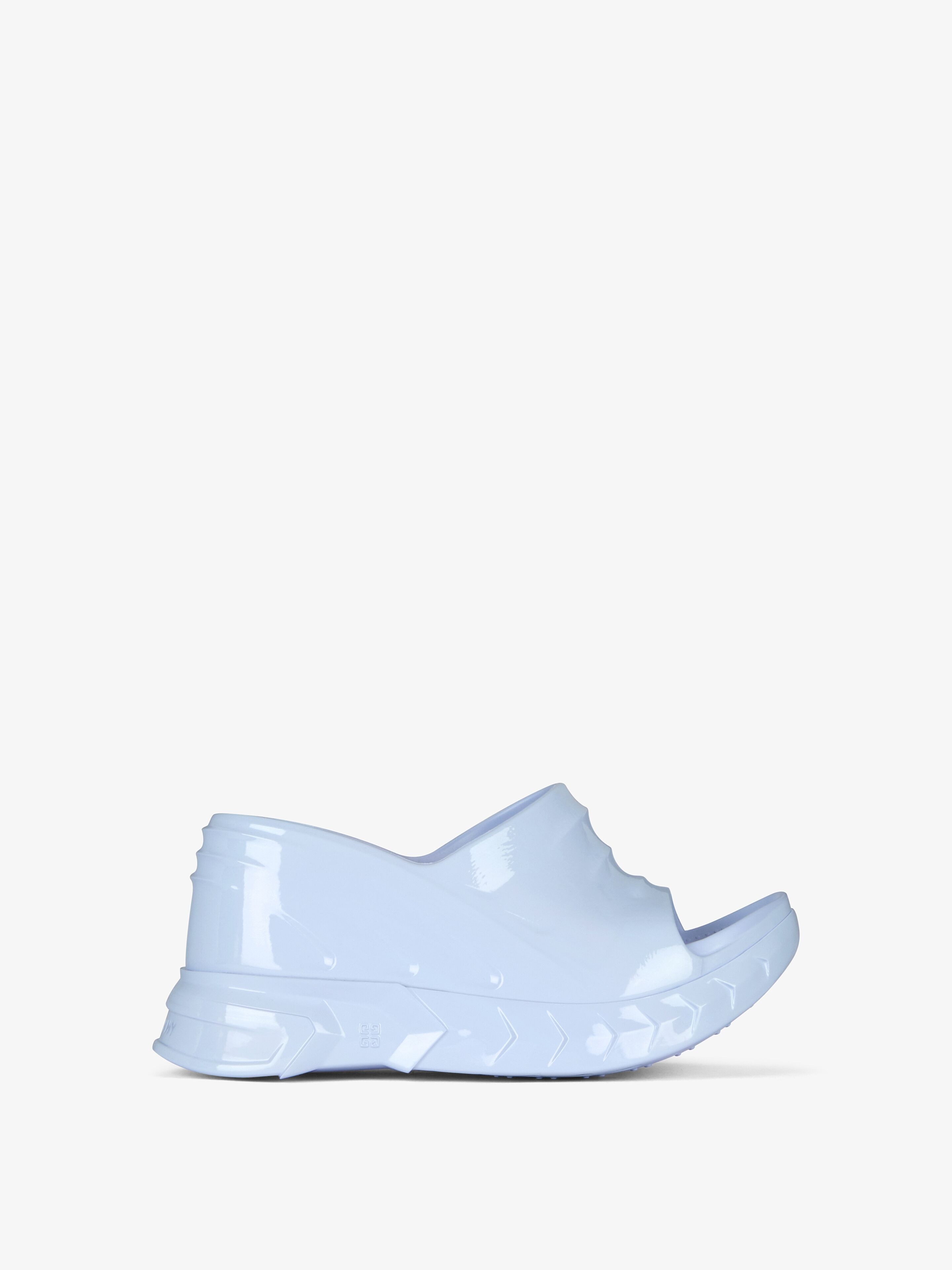 - Wedge sandals in molded rubber with mirror finishing, with thick graphic sole. - Marshmallow line. - GIVENCHY signature engraved on the heel. - Raised 4G emblem on the side. - Inner and outer soles with 4G signature. - Light and comfortable version. - Platform height: 1.8 in. - Heel height: 4.3 in.