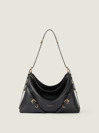 - Medium shoulder bag in elevated smooth calfskin leather with studs. - Voyou line. - V-shaped slouchy silhouette and generous volume. - Adjustable shoulder strap offering hand, crossbody or shoulder carrying. - GIVENCHY signature embossed on the front of the bag and on the top of the strap. - GIVENCHY Paris patch on the inside. - GIVENCHY engraved metal buckles. - Golden-finish metal details. - One main compartment and one zipped pocket inside. - Suede lining.