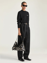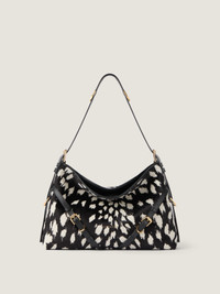 - Medium shoulder bag in pony effect calfskin leather with snow leopard pattern. - Voyou line. - V-shaped slouchy silhouette and generous volume. - Adjustable shoulder strap offering hand, crossbody or shoulder carrying. - Metal GIVENCHY signature on the front of the bag and embossed on the top of the strap. - GIVENCHY Paris patch on the inside. - GIVENCHY engraved metal buckles. - Golden-finish metal details. - One main compartment and one zipped pocket inside. - Suede lining. - Each bag is unique and the print may differ from one model to another.