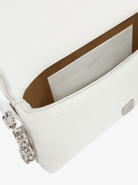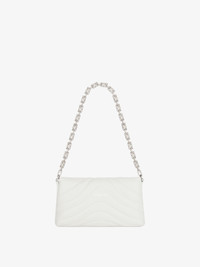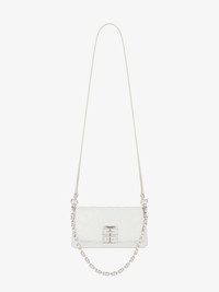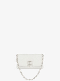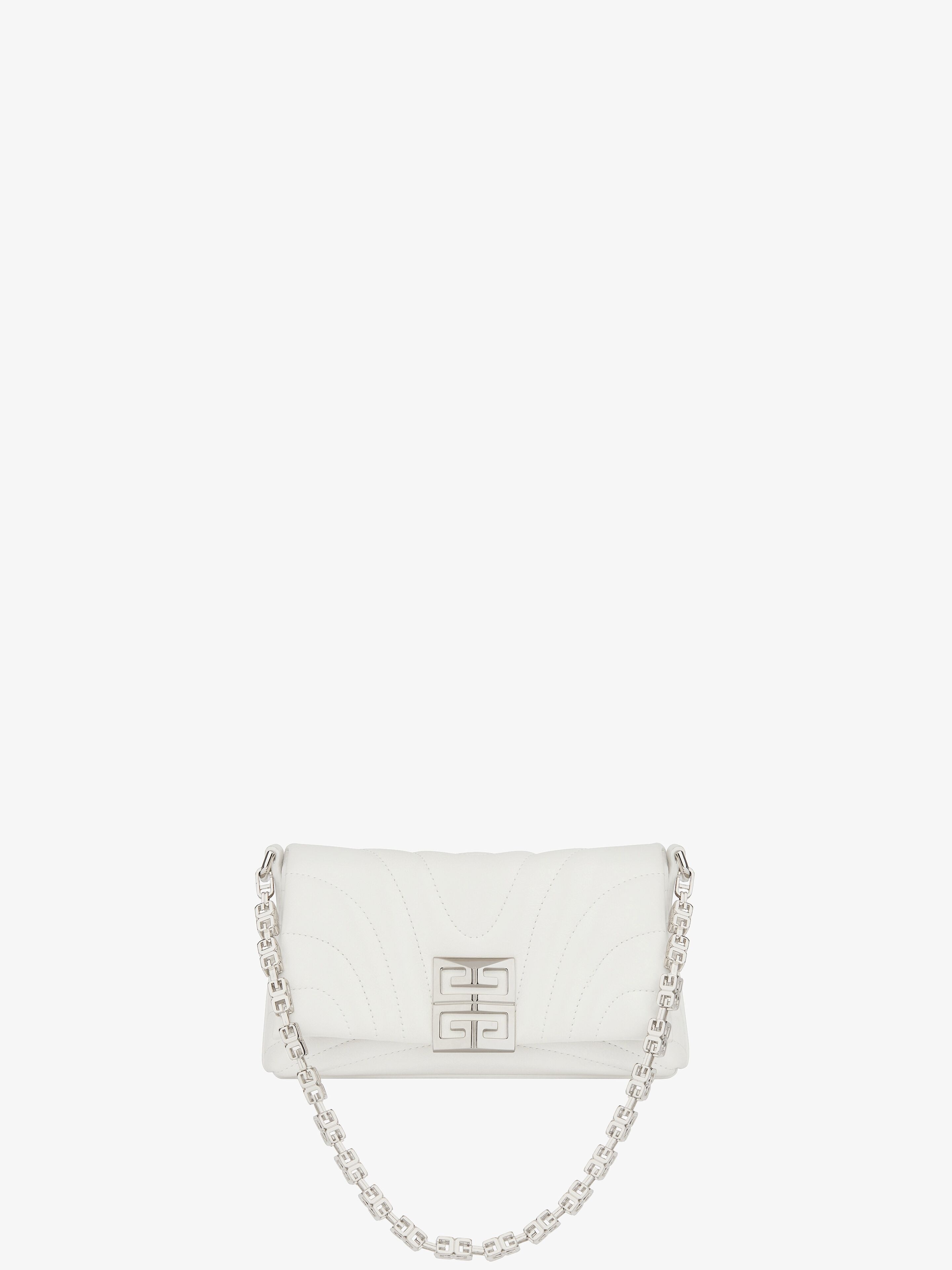 - Micro shoulder bag in quilted calfskin leather. - 4G Soft line. - Flap with 4G magnetic metal clasp. - G Cube metal chain on the front for hand or shoulder carrying. - Removable shoulder strap in leather with 4G emblems on the ends for crossbody carrying. - Silvery-finish metal details. - Silvery GIVENCHY signature on the back. - One main compartment with one inside flat pocket and one card slot. - Drop : 18.1 in.