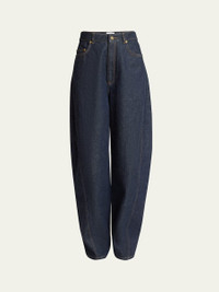 Mid-Rise Barrel-Leg Denim Cocoon Trousers